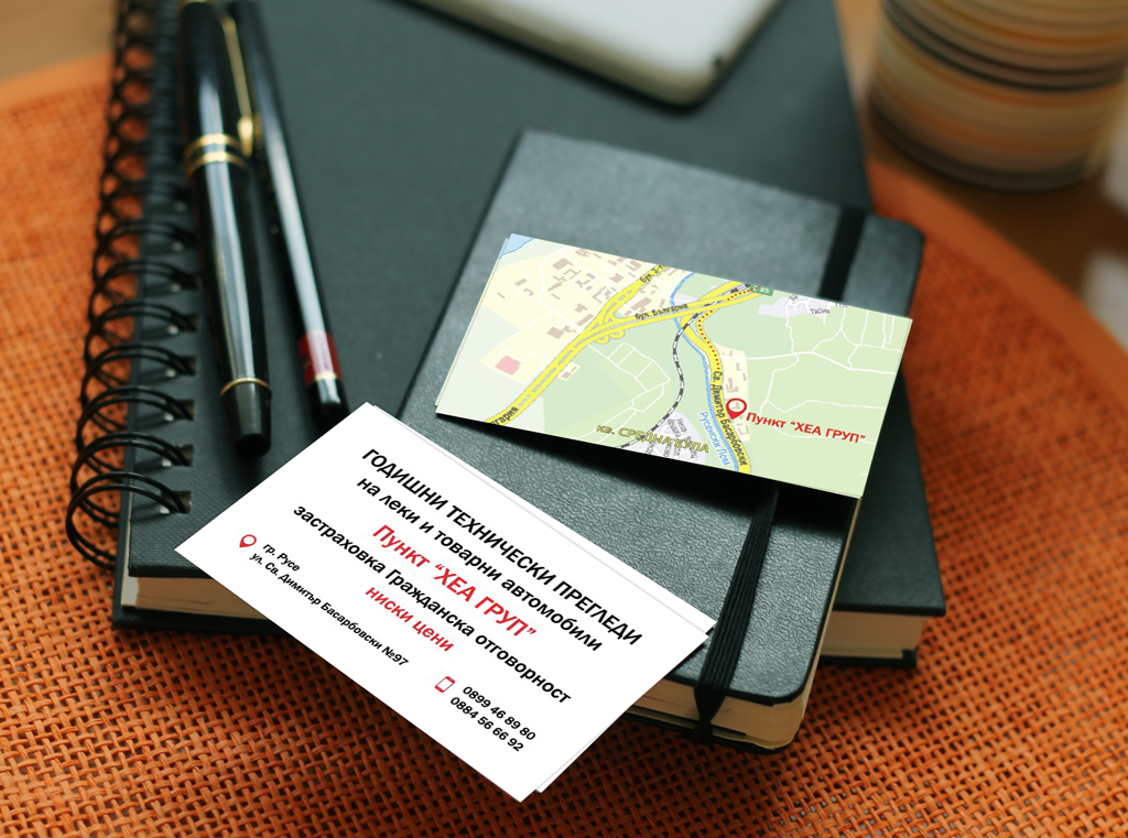 Визитнатата картичка обикновено е с размери 9 x 5 см и съдържа име на фирмата, на нейния представител, лого и