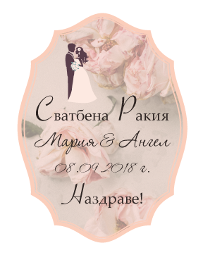 Етикети за бутилки по шаблон или по индивидуален дизайн за сватби, кръщенета, рождени и имени дни, годежи, юбилеи, абитуриентски балове,