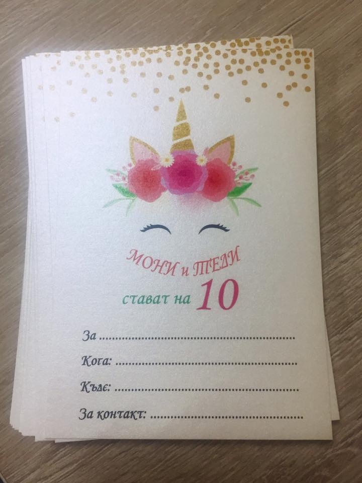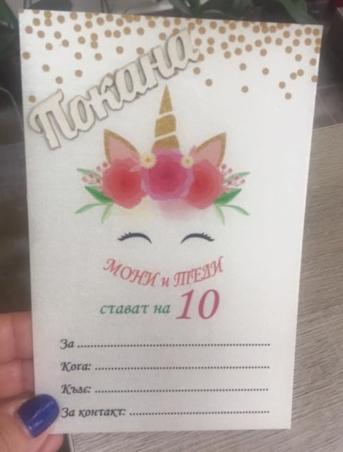 Покана за детски рожден ден „Еднорог“ с 3D надпис по Ваше желание
