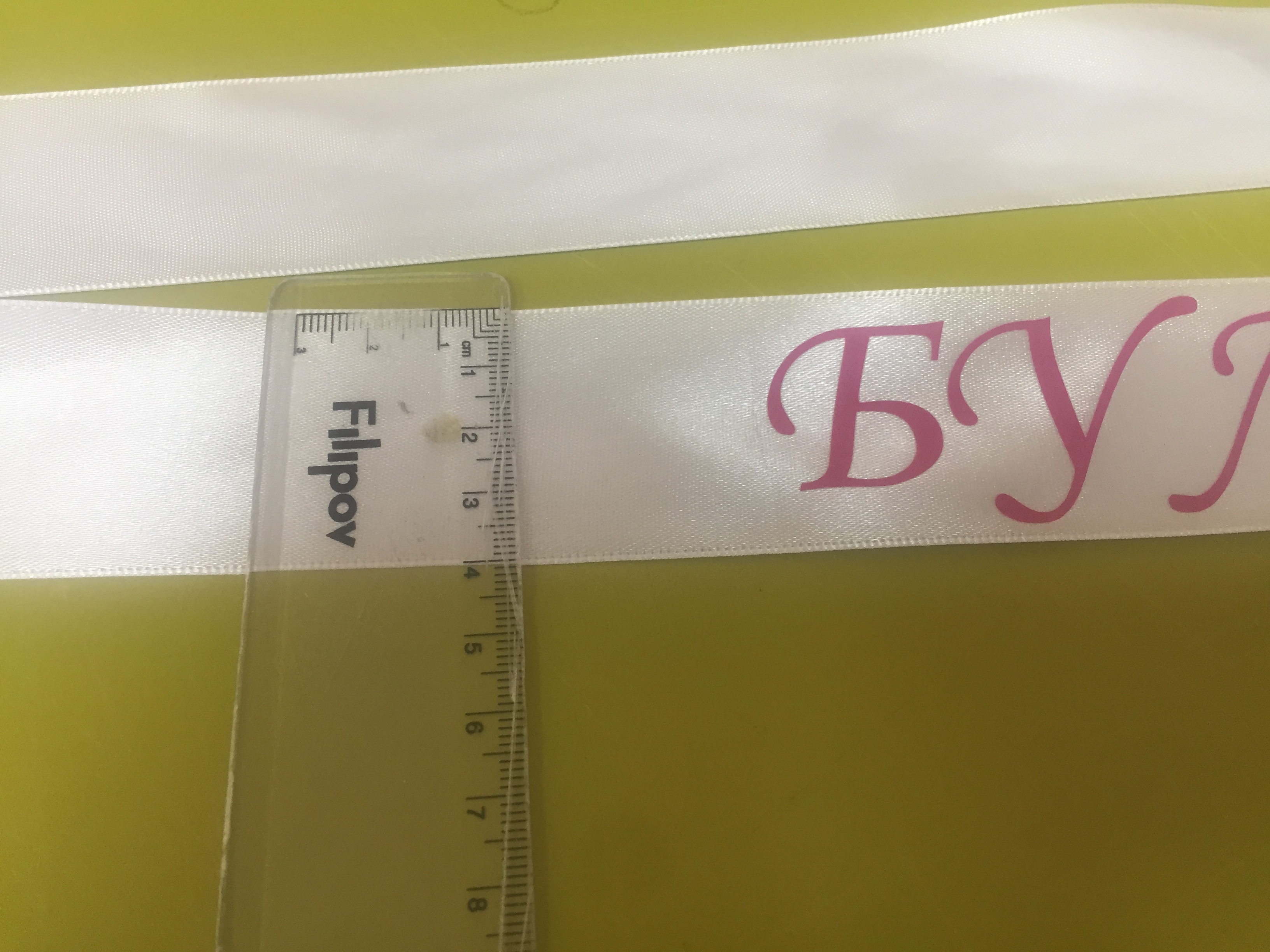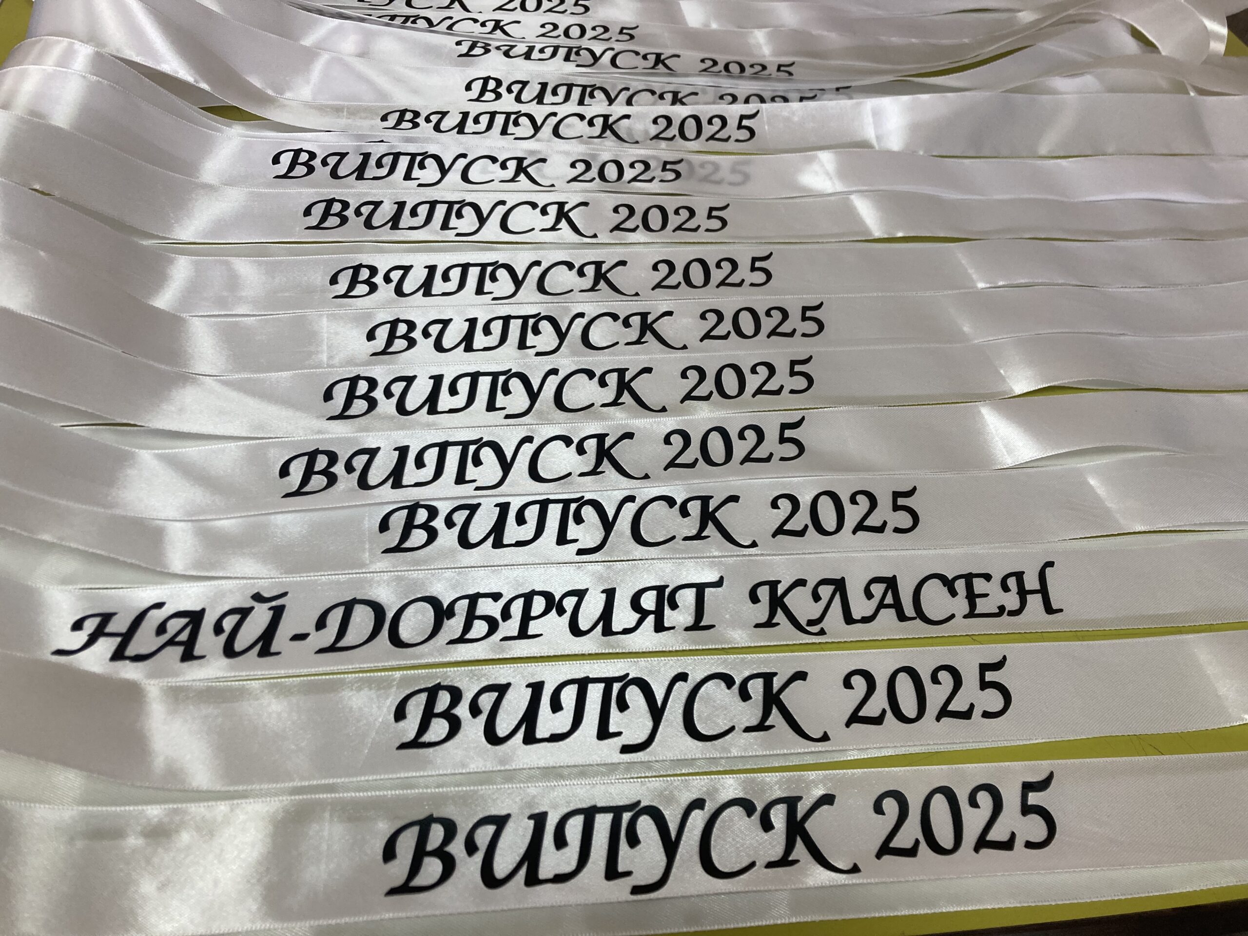 Сатенени ленти, подходящи за моминско парти, абитуриентски бал или други събития. Надписът е с термотрансферно фолио в цвят по ваш избор, изцяло съобразен с темата на събитието. Дължина 165 см.